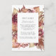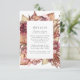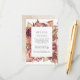 Elegante, blumengeschmückte Hochzeitskarte mit bordeauxroten, lila, rot-korallenfarbenen Blume und üppigem Blattwerk in kräftigen braunen Erdtönen. Personalisieren Sie die Gästekarten, indem Sie Schlüsseldetails wie Hotelunterkünfte, Informationen über den willkommenen Empfang, Ihre Website, etc. hinzufügen. Entworfen, um mit unserer Hochzeitskollektion Boho Wüste Floral zu koordinieren.