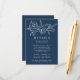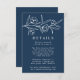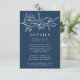 Elegante blumengeschmückte Hochzeitskarten mit weißgezeichneten Blume und Blätter in der Nähe der Oberseite des Designs mit mariniertem Hintergrund. Persönlich gestalten Sie die botanischen Hochzeitskarten mit Ihren Hochzeitsdetails unten in klassischer weißer Schrift. Entworfen, um mit unserer Hochzeitskollektion Sketched Floral zu koordinieren.