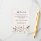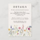 Genießen Sie den Reiz Ihrer Hochzeit im Frühjahr oder im Sommer mit unserer eleganten Wildblume Meadow Cream Wedding Detection Card, die mit weißlichen Aquarellfarben-Wildblumen und üppigem Blattwerk in einer Palette von Rosa, Gelb, lila, Blau und Grün geschmückt ist. Ergänzend zu unserer Hochzeitseinladung sorgt diese elegante Ergänzung dafür, dass jeder Gast über die notwendigen Hochzeitsdetails informiert wird. Unsere elegante Wildblume Cream Wedding Details Card ist die perfekte Wahl für Paare, die an ihrem besonderen Tag eine harmonische Mischung aus Tradition und Innovation suchen.