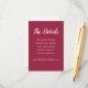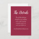 Trendy Wein rot Farbe, vertikale Trauung Gehäuse Karte mit weißen, stilisierten Skript, die die Anleitung gibt, alle Details der Hochzeit des Paares auf ihrer Hochzeitswebseite zu finden. Passen Sie Ihre Gehäusekarte an, indem Sie den gewünschten Text bearbeiten und den Namen der Webseite durch Ihren eigenen ersetzen.