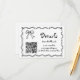 Schwarz-Weiß Hand gezückte Schnörkel-Schreiber skimalisch Retro Französisch Stil Hochzeitsdetails Gehäuse Karte. Diese Schwarz-Weiß-Kapselkarte bietet eine skurrile Touch zu Ihren Hochzeitsdetails. Das Design im Retro-französischen Stil verfügt über einen spielerisch handgezeichnet Squiggle-Rahmen und eine charmante Drehbug-Illustration. Das Wort "Details" wird hervorgehoben, um Ihre Gäste zum Zweck der Karte zu führen: um Zugang zu weiteren Informationen zu erhalten. Ein gut platzierter QR-Code ermöglicht es den Gästen, alle Details, von wichtigen Zeiten bis hin zu Standortinformationen, einfach zu scannen und zu erreichen. Diese Karte verbindet künstlerisch gezeichnete Elemente mit intelligenter Funktionalität und bietet eine stilvolle und bequeme Lösung für den Austausch wichtiger Hochzeitsdetails.