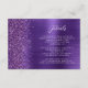 Diese elegante, moderne Kapseleinhängekarte für Hochzeitsdetails besticht durch ein lila Hintergrundbild aus gebürstetem Metall, das mit Imitaten bespannt ist und einen Diamant-Glitzer aufweist. Passen Sie den weißen Text an, mit dem Titel "Details" in stilvollem Handschriftenskript und dem restlichen Text in serifenem Schriftart. Die Rückseite ist mit einem lila gebürsteten Metall und Imitat Glitzer-Design ausgestattet.
