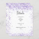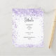Weiß mit violettem, lavenfarbenem Imitat verziert, der Glitzer staub. Personalisieren Sie Ihre Hochzeitsdetails und fügen Sie diese hinzu. Schwarze Buchstaben.
