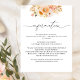Schöne vertikale Pfirsichzettel mit Details Umzäunung Karte, wo Sie alle Details hinzufügen können, die Sie möchten. Design mit anmutiger moderner handgeschriebener Kalligraphie und schönen Aquarellblumendetails in pfirsich, orange, rot und cremefarbenen Champagnertönen. Die Möglichkeit, alle Details, unsere sind nur ein Beispiel. Sie können "weiter anpassen" wählen und alle Textanpassungen vornehmen, die Sie benötigen. Teil unserer Kollektionen "Peach Floral Delight" mit einer Vielzahl von koordinierenden Produkten in sieben Farbthemen Optionen zu koordinieren.
