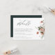 Elegantes Aquarelltöne Erden Herbst botanischer Blumenstrauß, Hochzeitsdetails Karte. Kartenfunktionen, moderne Skriptdetails und smaragdgrüne Farbabdeckung und mehrere Vorlagenlinien für Ihre Details.