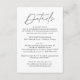 Einfache und elegante Hochzeitsdetails-Karte mit einem schwarzen, handgeschriebenen Skript, gemischt mit modernen Schriften vor weißem Hintergrund. Personalisieren Sie die minimalistische Hochzeitskarte mit Ihren Hochzeitsdetails wie Empfang-Informationen, Hotel-Unterkünfte, Hochzeitswebsite, etc. Die schwarz-weiße Hochzeitskarte eignet sich perfekt für moderne Hochzeiten.