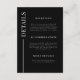 Einfache Einladungs-Eintrittskarte für Hochzeitsfeiern mit einem klaren und minimalen Look mit einer Linie mit dem Titel auf der Seite. Passen Sie diese Einladung an, indem Sie Informationen über Ihre Hochzeit, einschließlich Empfang, Unterkunft und Website. Die Farbe ist schwarz-weiß.