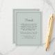 Diese einfache, elegante Hochzeitskarte in hellgrün ist so konzipiert, dass Sie Ihren geladenen Gästen Informationen rund um Ihren Hochzeitstag geben können. Ein Muster-Textvorlage ist enthalten, um mit allen Informationen, die Sie mit Ihren Hochzeitseinladungen einschließen möchten, personalisieren zu können. Benutzen Sie es, um Informationen über Hotelunterkünfte, Ihr Hochzeitsregister oder Ihre Website, besondere Ansammlungen, Transportinformationen, Fahrtrichtungen, etc. zu erhalten. Sie können auch die Weiß-Hintergrundfarbe dieser Gehäusekarte mit einer anderen Farbe ändern.