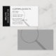 Visitenkarteschablone des privaten Auges einschließlich eine Lupe im Hintergrund in einem Schwarzweiss-Entwurf. Entworfen für einen Detektiv, einen privaten Detektiv oder einen Sprungshändler.