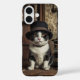 Eine bezaubernde Katze in Detektivkleidung, die mit Neugier und Charme untersucht, spielerisch und skurril gestaltet.