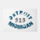 Typografie-Design bietet "Michigan" und "Detroit" in gebogenem Text mit dem Bereichsvorwahlcode 313 für den Detroit-Bereich, in grunge/Not-Look Schriftart.