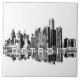 Dieses Kunstwerk zeigt die Stadt Detroit, die Skyline von Michigan mit einer schwarzen Farbreflexion. Großartig gerahmt oder in einem Zuhause-Dekorationsprojekt.