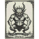 Ein schelmischer Dämon aus einem vergessenen Bestiarium, Deumus verbindet grotesken Charme mit unheimlicher Eleganz. Gekrönt von gezackten Hörnern und in scharfer Tinte geätzt, strahlt er List, Chaos und dunkle Folklore-Energie aus.