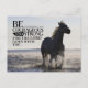 Die Postkarte mit inspirierenden Zitaten zeigt ein herrliches Pferd, das im Wasser läuft. Es zeigt die Bibel Verse Deuteronomie 31:6, "Sei mutig und stark für den Herrn geht mit dir."