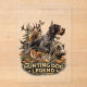 Dieses vintage-style Jagd-Kunstwerk zeigt einen kräftigen Deutsch Drahthaar in einer klassischen Pose, umgeben von Wildtieren und Waldelementen.