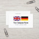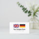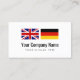 Übersetzer-Visitenkarteschablone der Übersetzungsdienste deutsch-englische. Kundenspezifischer Besuchskartenentwurf mit britischem Gewerkschafts-Jack und Deutschland kennzeichnet Firmenlogo. Einfache Karten mit moderner Typografie für Namen und Slogan. Berufliche Karten für die Übersetzungsdienste, Sprachlehrer, Bildung, Reiseindustrie, Produkte, das Visum, das Dienstleistungen behandeln, die Übersetzerdienstleistungen, internationales Gesetz, Reisebüro, Transport, Import-export, Sprache, die Firma übersetzen, Geschäftsgeschäfte, den Freiberufler etc., der in den verschiedenen Größen verfügbar sind, Papierstärke und runde Ecke schnitten Form heraus. Auch verfügbar für andere Sprachen.