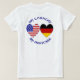 Der T - Shirt der Damen mit Kurzarm hat ein Design auf Vorder- und Rückseite. Es zeigt herzförmige Flaggen Deutschlands und der USA. Oben steht "MEIN LAND". Unten steht "MEIN ERBE". Spaß für Wiedersehen und Familien oder Vereine und Reisegruppen. Cooles Geschenk für jeden Anlass. Gut für das Oktoberfest.