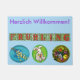 Ist hier eine Matte, die ich an der Tür zu meiner deutschen Klasse mich im Frühjahr setze. Sie kennzeichnet das deutsche willkommene "Herzlich Willkommen!" sowie das Wort für Frühling, "Frühling." Die Illustrationen, zum der Jahreszeit zu markieren umfassen Pussyweiden, ein Häschen mit Eiern und einen Korb der Blumen. Sie können die Hintergrundfarbe, aber FYI besonders anfertigen, dass Farbe auch da die Hintergrundfarbe der Buchstabeblöcke im Frühjahr erscheint. Auftrag einer für Ihr Klassenzimmer, auch.