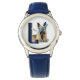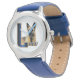 Kinderuhr aus Edelstahl mit blauem Lederarmband