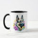 Hübsche ai art wassercolor style German Shepherd umgeben von gelben und rosa Blume. Deutsche Schäfermutter.