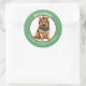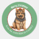 Im Mittelpunkt dieses niedlichen Holiday-Aufklebers steht ein Bild eines bezaubernden kleinen deutschen Shepherd-Welpenhundes mit seiner schwarzen Lederjacke und einem Winterhut. Das Bild ist in einem kreisrunden grünen Rahmen gerahmt, der den benutzerdefinierten Text in Weiß enthält. Niedlich für Weihnachtskarten, Korrespondenz und Geschenkpakete.