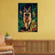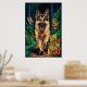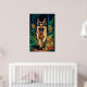 Deutscher Hirte, der durch den Wald läuft Poster