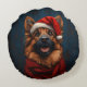 Deutscher Hirte in einer Weihnachtsmannmütze Rundes Kissen