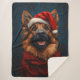 Deutscher Hirte in einer Weihnachtsmannmütze Sherpadecke