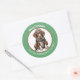 Ein Bild eines bezaubernden kleinen deutschen Kurzhundewelpen, der seinen Winterschal trägt und im Zentrum dieses niedlichen Holiday-Aufklebers steht. Das Bild ist in einem kreisrunden grünen Rahmen gerahmt, der den benutzerdefinierten Text in Weiß enthält. Ideal für Weihnachtskarten, Korrespondenz und Geschenkpakete.