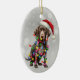 An der Vorderseite dieses Holiday-Ornament ist ein Bild eines deutschen Kurzhundes, der eine Weihnachtsmannmütze trägt und in farbigen Weihnachtsbeleuchtung verpackt ist. Das Bild ist Set vor einem festlichen silbernen Hintergrund. Die Rückseite des Ornaments hat den gleichen Hintergrund mit eigenem Text, der derzeit "Frohe Weihnachten glücklich Neues Jahr", das Datum und Ihre Unterschrift sagt. Niedlich für jeden, aber besonders für Pointer-Fans.