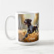 Deutscher Kurzzeitpointer läuft Kaffeetasse
