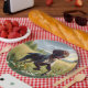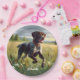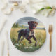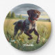 Ein deutscher Kurzzeiger-Hund, gesprenkelt, läuft durch ein Feld mit Blume in dieser schönen Abbildung.