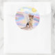 Ein deutscher Schäferhund probiert ihre Flügel unter den flauschigen Wolken des Himmels aus, bevor sie frei in die Regenbogenbrücke eintreten können, wo Engel und Freunde warten.l