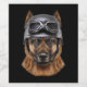 Deutscher Schäferhund, Fahrrad in Motorradhelm Weinetikett