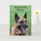 Eine Geburtstagskarte eines Hundeliebhabers mit einem gut aussehenden deutschen Schäferhund. Das Foto ist auf der Alsationsfläche nah. Sie können den Namen und den Gruß auf der Vorderseite personalisieren, und die Worte innen.