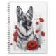 Der deutsche Schäferhund auf diesem Notizbuch verströmt mit seinem aufmerksamen und intelligenten Ausdruck ein Gefühl von unerschütterlicher Loyalität und Stärke, während er sich friedlich unter den roten Pappeln sitzt.