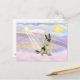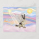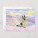 Ein deutscher Schäferhund probiert ihre Flügel unter den flauschigen Wolken des Himmels aus, bevor sie frei in die Regenbogenbrücke eintreten können, wo Engel und Freunde warten.l