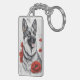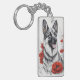 Mit diesem Schlüsselanhänger erobern Sie das Wesen der Kraft und Loyalität, indem Sie einen deutschen Schäferhund unter den roten Mohnköpfen vorstellen.