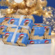 Deutscher Schäferhund sitzt auf der Weihnachtsmann Geschenkpapier