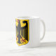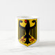 Das Wappen Deutschlands zeigt einen schwarzen Adler (den Bundesadler "Bundesstaatlich Eagle", früher Reichsadler "Kaiseradler") auf einem gelben Schild (oder einen Adler, der als Einmalware dargestellt wird). Es handelt sich um eine Wiedereinführung des von der Bundesstaatlichen Republik Deutschland 1950 adoptiert Wappen der Weimarer Republik (in Gebrauch 1919-1935). Das aktuelle offizielle Design ist auf Tobias Schwab (1887-1967) zurückzuführen und wurde 1928 eingeführt.