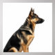 Hochwertige Grafik eines Deutschen Schäferhirds in einem Seitenprofil mit klassischen Schwarz-Bräune-Markierungen. Der Hund sitzt mit seiner Ohrwarnung und seinem Kopf hoch.