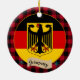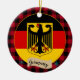 Ornamente: Rustikales deutsches Dekor mit deutscher Fahne, umgeben von roten und schwarzen Büffel karierte Muster - Liebe mein Land, Weihnachtsdekoration, nationale Patrioten / Sportfans.