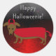 Frohe Halloweenie! Whimsikale Dackel als Teufel für Halloween-Aufkleber verkleidet