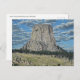 "Devils Tower National Monument, Wyoming" von Catherine Sherman. Devils Tower erhebt sich aus den Hügeln von Nord-Wyoming unter einem bewölkten Himmel. Devils Tower war das erste National Monument der Vereinigten Staaten, das am 24. September 1906 von Präsident Theodore Roosevelt gegründet wurde. Die Grenze des Denkmals umfasst eine Fläche von 545 ha. Das große Material, das den Turm bildet, ist ein Phonolit-Porphyr, der vor etwa 40,5 Millionen Jahren eingedrungen ist, ein helles bis dunkelgraues oder grünlich-graues, graues Gestein mit auffälligen Kristallen aus weißem Feldspat. Als sich die Magma kühlte, bildeten sich sechseckige (und manchmal 4-, 5- und 7-seitige) Säulen, die jeweils einen Durchmesser von ca. 1,50 m hatten. Als der Gestein weiter cool wurde, schrumpften die vertikalen Spalten in der Breite und Risse traten bei 120 Grad Winkeln auf, die sich in der Regel aus kompakten 6-seitigen Säulen bildeten. Die Sioux, die in dieser Gegend lebten, erklären die gepflegten Seiten mit einer Geschichte von Mädchen, die in der Nähe spielen. Plötzlich fingen Riesenbären an, ihnen nachzujagen. Die Mädchen kletterten auf einen Felsen und beteten für den Großen Geist, sie zu beschützen. Der Große Geist hob den Felsen und erschuf einen Turm in den Himmel. Die Bären konnten die Mädchen nicht erreichen, aber versuchten es, indem sie tiefe Krallen auf der Seite des Turms verließ. Diese Klauen erklären die säulenartigen Formen an der Außenseite des Devils Tower.