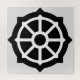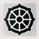In diesem Design ist das buddhistische Rad Dharma zu sehen, ein Symbol, das in indischen Religionen wie Hinduismus, Jainismus und besonders im Buddhismus häufig verwendet wird. Das Dharmarad ist in Sanskrit als "Dharmachakra" und in Pali als "dhammacakka" bekannt. Die Dharmachakra diente oft als Dekoration in buddhistischen Tempeln, Statuen und Inschriften. Im Buddhismus bedeutet Dharma "kosmisches Recht und Ordnung", wie es in den Lehren des Buddha zum Ausdruck kommt.