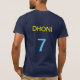 Vorderes Design: Hauptgrafik: Eine dynamische Abbildung von MS Dhoni in seiner ikonischen bösen behaltend Pose, die seinen ruhigen und dennoch intensiven Fokus einfängt. Die Grafik sollte detailliert sein und Dhoni in seinem indischen Cricket-Trikot mit seinen bösen behaltend Handschuhen zeigen. Hintergrund: Eine subtile Cricket-Stadionkulisse mit schwachen Crowddetails, um die Atmosphäre des Spieltages zu unterstreichen. Text: Über der Grafik steht "Captain Cool" in fett gedrucktem, sportlichem Schriftart. Unter der Grafik, sein berühmtes Zitat, "Es ist wichtig, zu lernen und nicht die gleichen Fehler wiederholen. Was getan wird, ist getan", ist elegant geschrieben. Zurück Design: Spielernummer: Eine große "7" in der Mitte, symbolisiert Dhonis Trikotanzahl, mit einer Textur, die den Stoff eines Cricket-Trikots nachahmt. Unterschrift: Dhonis Autogramm wird knapp über der Zahl gedruckt und verleiht ihm eine authentische und persönliche Touch. Hintergrund: Ein Schatten der indischen Flagge windet sich sanft hinter der Zahl und symbolisiert den Nationalstolz. Material und Eignung: Material: 100% Baumwolle für Komfort und Atmungsaktivität. Fit: Erhältlich sowohl in normaler als auch in schlanker Form, sodass jeder Cricket-Fan ein tolles Aussehen und Gefühl hat. Farboptionen: Navy Blau, Weiß und Grau mit kontrastreichen Elementen im Design, um den grafischen Pop zu machen. Zusätzliche Details: Ärmel: Kleiner indischer Fahnenpflaster auf einem Ärmel und ein Logo der ICC-Weltmeisterschaft auf der anderen, zum Gedenken an Dhonis Errungenschaften. Neckline: Runder Hals mit verstärkter Naht für Haltbarkeit.