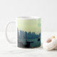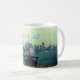 Dhows im Hafen von Doha - blauer Himmel mit einigen weißen Wolken/Meer und die moderne Stadt mit ihren Gebäude in der Ferne. Traditionelle und moderne Werte in Katar . Es ist ein spannendes Thema, das oft in Alma Wads urbaner Kunst vorgestellt wird. Dieses digitale Gemälde ist ein Stück Originalkunst, das auf dieser Tasse gedruckt wurde. Das Wort Katar ist auch auf Arabisch geschrieben. Alle Rechte vorbehalten!