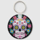 Der Zuckerschädel Dia de los Muertos (Tag der Toten) ist von bunten Blume umgeben.