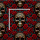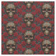 Die Skulpturen sind von rote Rosen und schwarzem Blattwerk umgeben, auf diesem wunderschönen Goth-Stoff. Ideal für Kleidung und Steppdecken.
