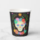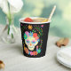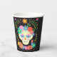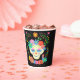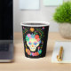 Charmanter Zucker Schädel gerahmt mit bunten Blumen, Süßbrot und glühender Kerze.